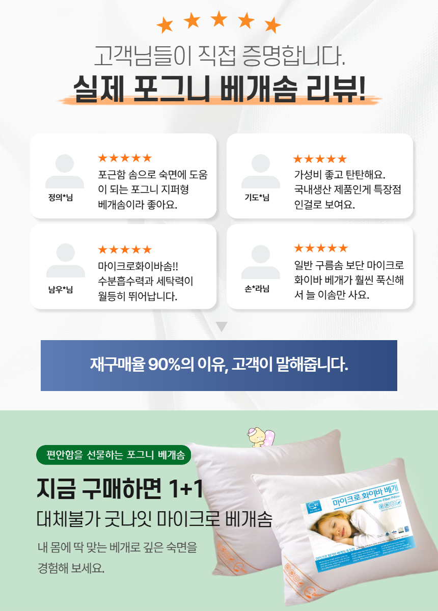 1+1 굿나잇 마이크로 화이바 베개솜 40x60,50x70