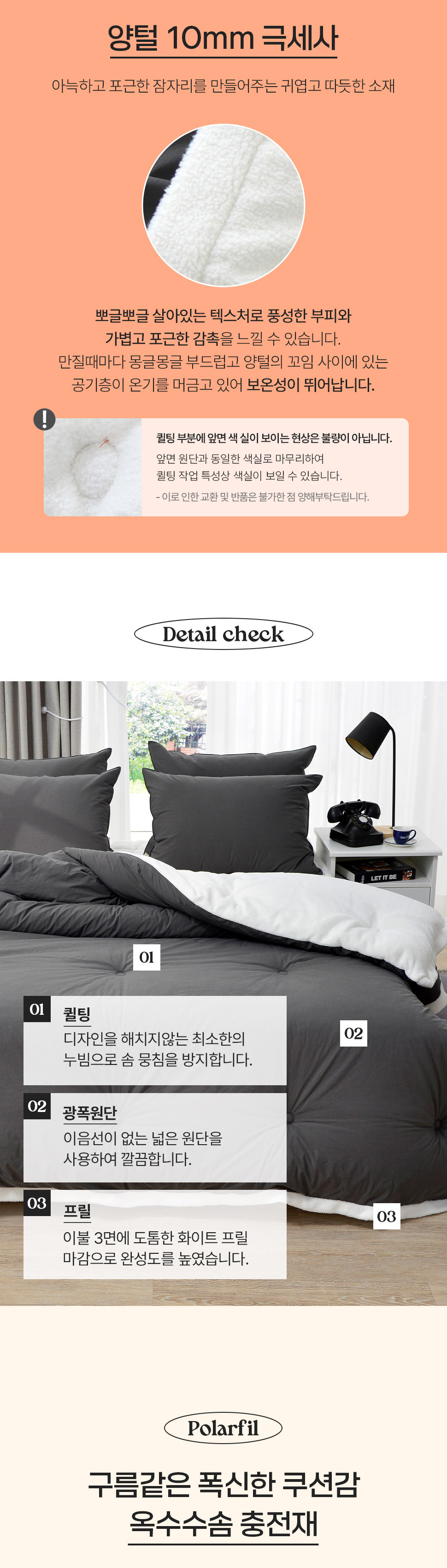 스노우퍼프 고밀도 순면 양털 10mm 극세사 차렵이불 침구